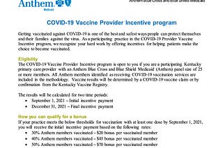 Anthem COVID-19 Vaccine Provider Incentive Program