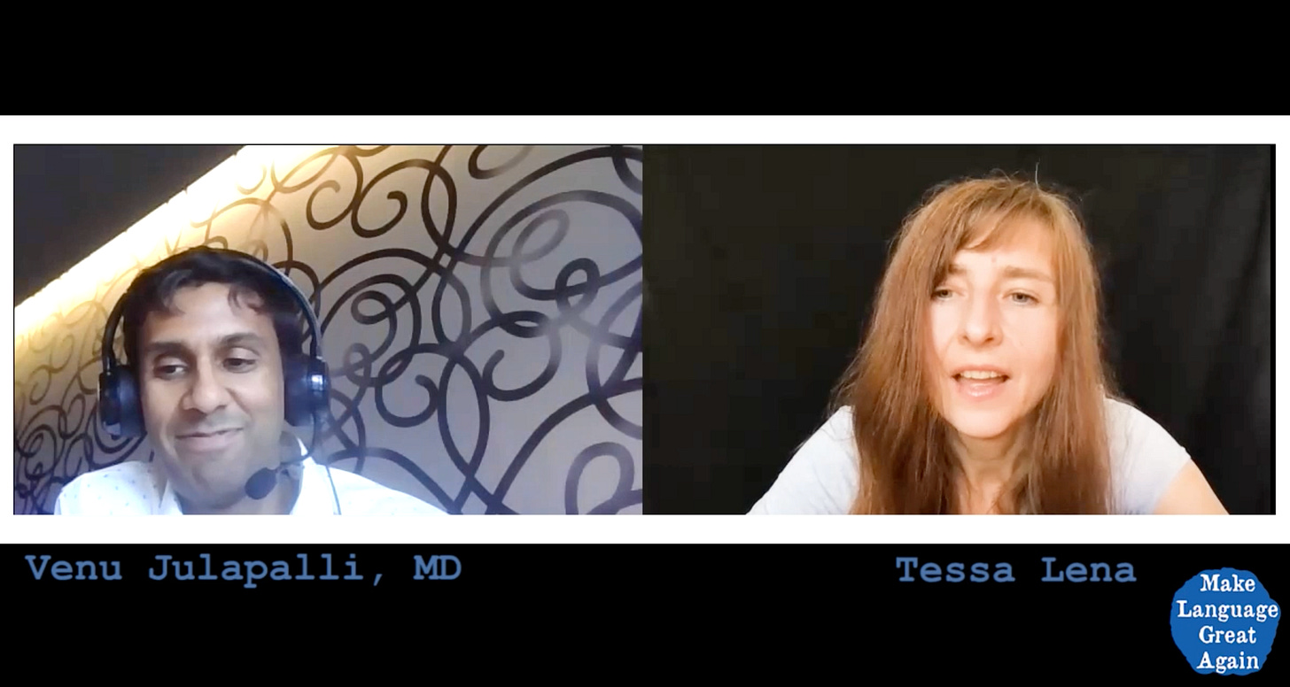 In this episode of Make Language Great Again, I had the honor to interview Dr. Venu Julapalli, an impressive human being and a principled, compassionate physician. Not only is he a conscientious doctor—he is also a great philosopher, which I found extremely compelling. Dr. Julapalli’s presence, his insights into the bigger picture, his love of medicine, and his passion for the truth are extre…