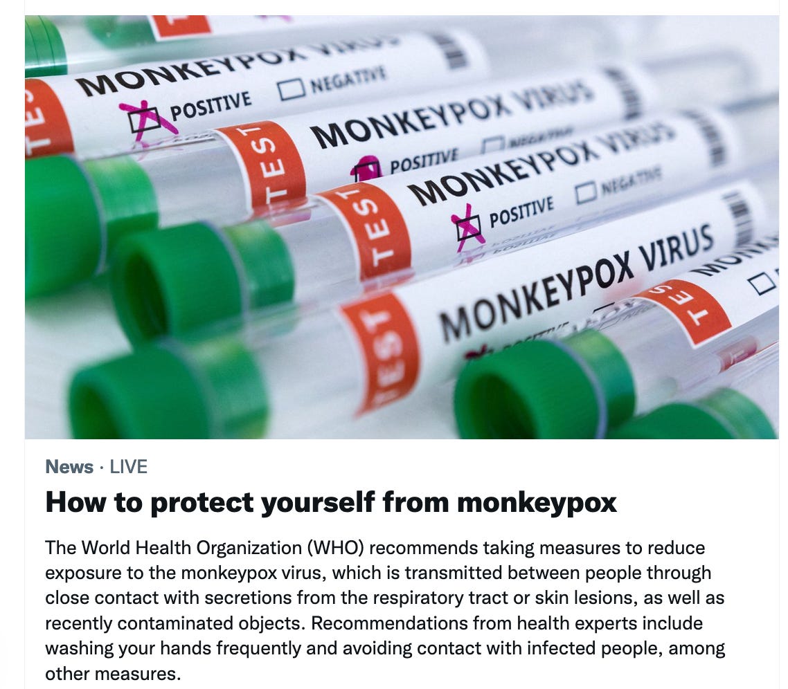 To prevent monkey pox: "Recommendations from health experts include washing your hands frequently and avoiding contact with infected people, among other measures."