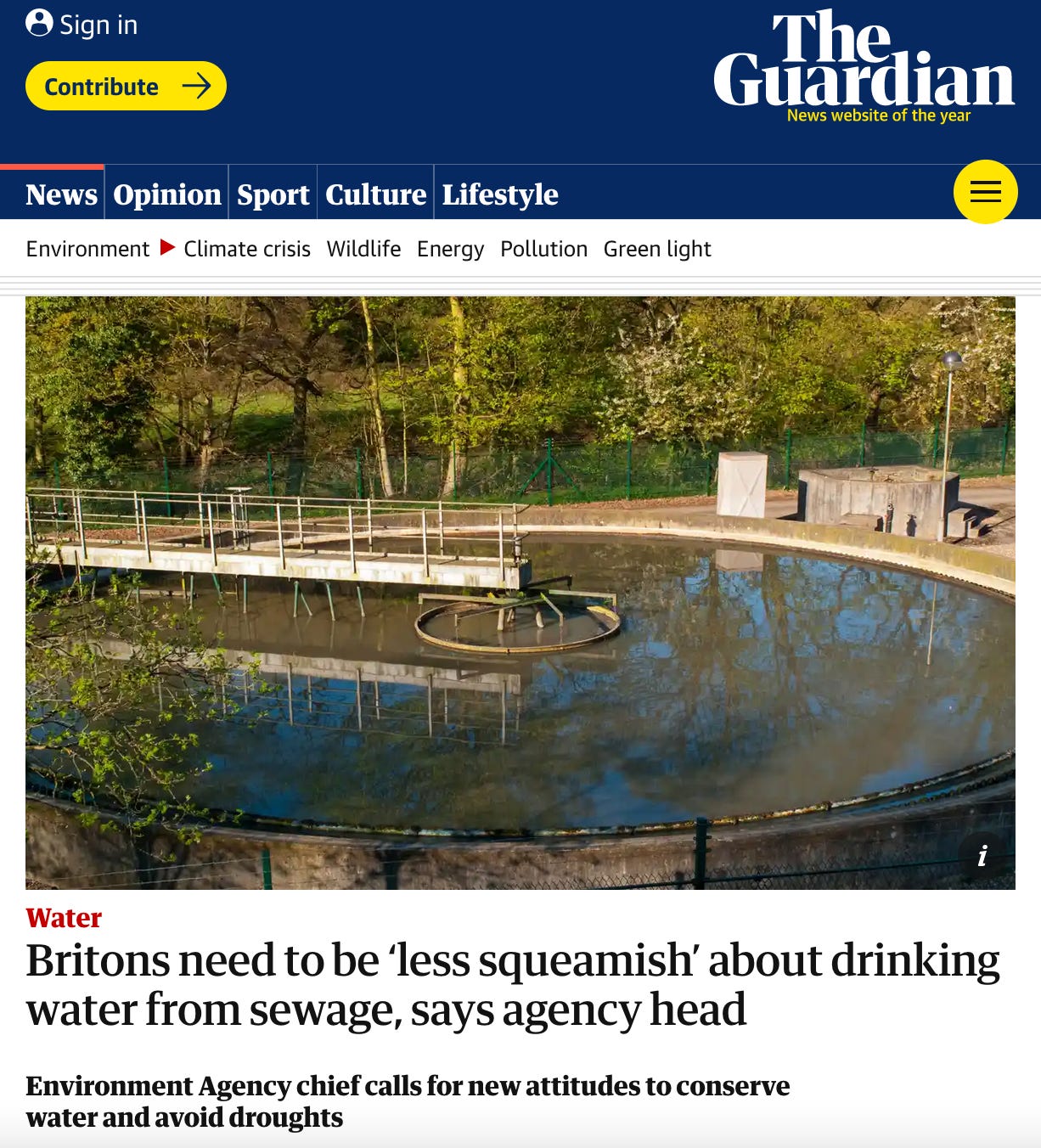 British people need to be “less squeamish” about drinking water derived from sewage, the boss of the Environment Agency has said.