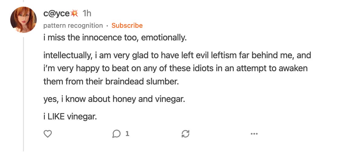 This person with an empty Substack and what looks like an AI-generated photo jumped on my comments in Notes and starting trying to cause trouble, and pretending to “side” with me.